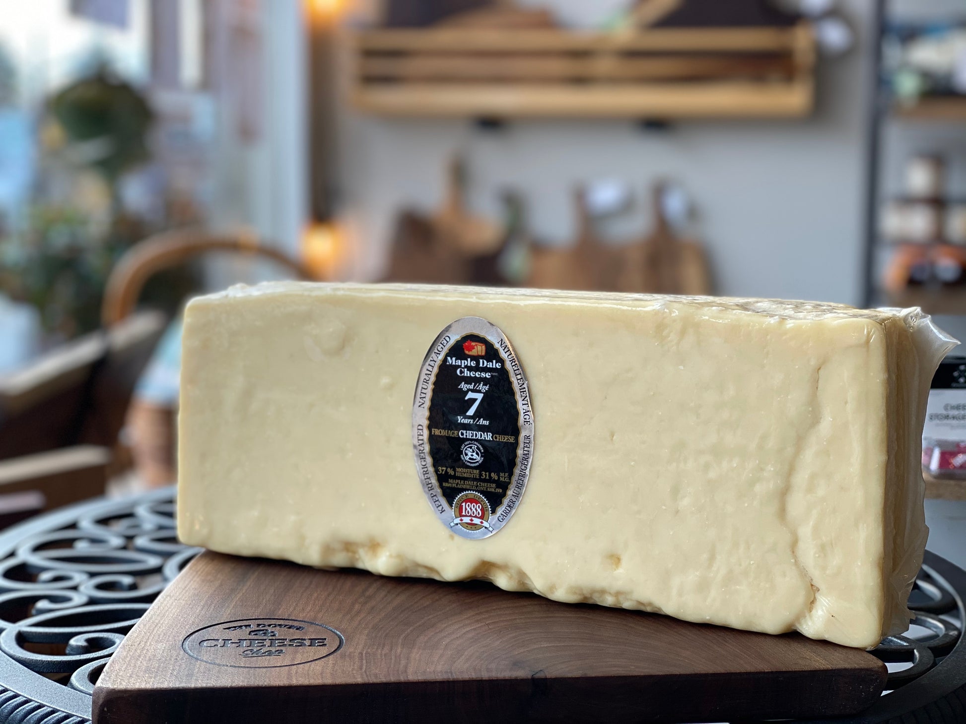 Aged to perfection, this cheese has a bite and a creamy mouthfeel. Naturally aged for 7 years, this Canadian cheddar is a great addition to any cheese board.