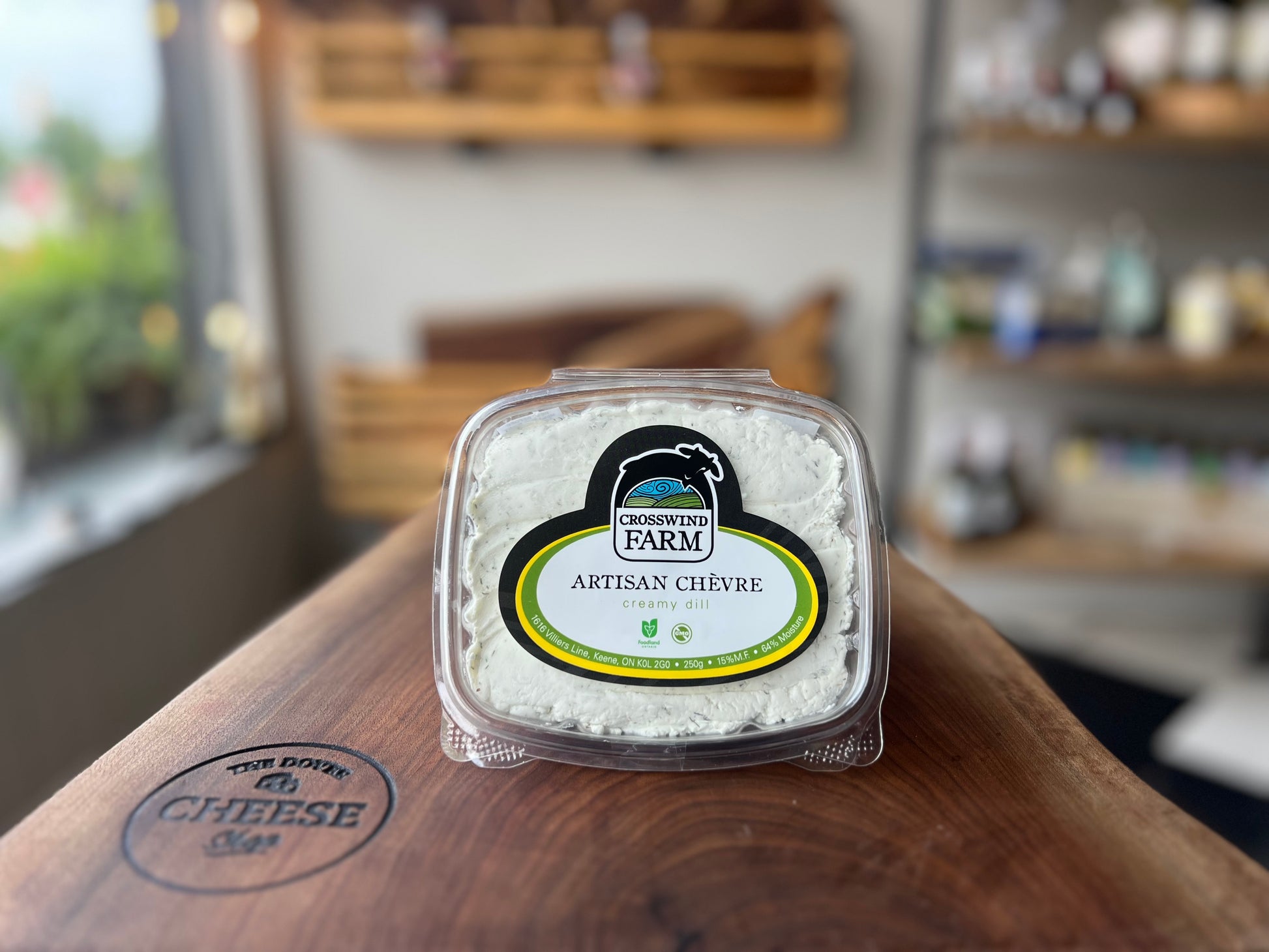 Crosswinds Farm chèvre is their pride and joy! A creamy fluffy textured cheese with the perfect balance of sweet orange and tangy cranberry. This soft spreadable cheese has a mild creamy texture and is great on your favourite cracker or fresh bread.