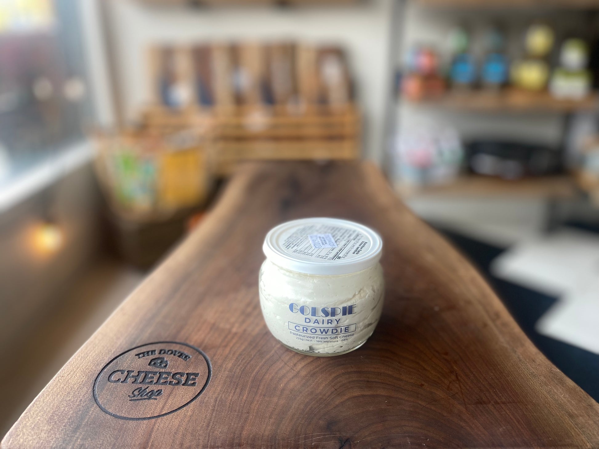 Crowdie is fresh cheese that is made using whole milk. It is similar to a cream cheese, but easily spreadable with a tangy flavour. It is excellent on a bagel, or it can be used in place of cream cheese or sour cream in your favourite recipes.