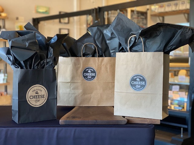Simple beauty, our Dover Cheese Shop gift bags are the perfect packaging choice for your special gift. As an added bonus, our gift bags are 100% recyclable to help eliminate waste since what's inside the beautiful packaging is truly what matters.