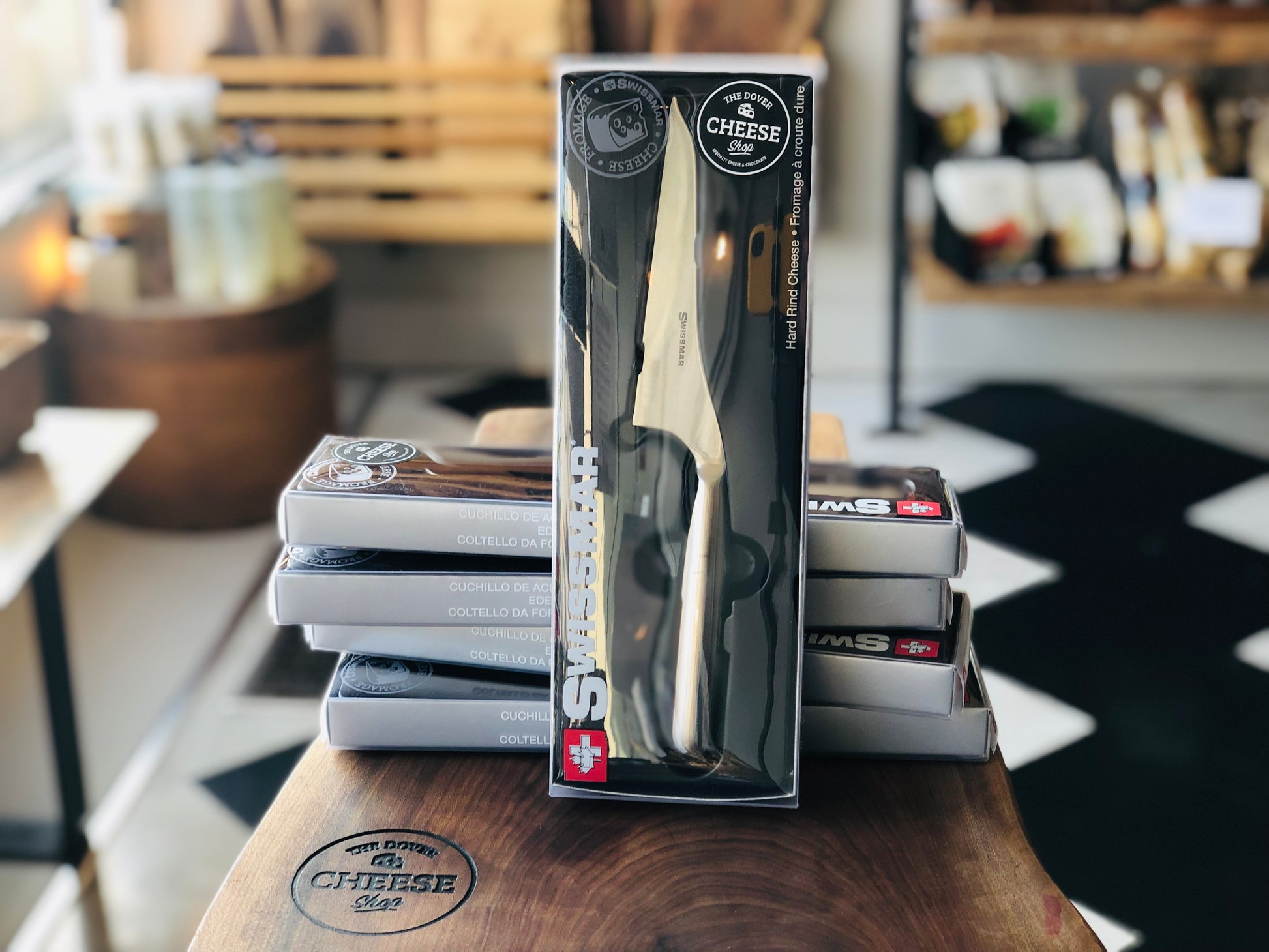 This hard rind cheese knife is perfect for hard cheeses such as gruyere and pecorino. It features a sharp tip for piercing rinds and a raised handle which allows for cutting on a plate without hitting plate lip.