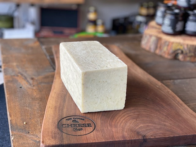 This beautiful goat cheddar has just the perfect blend of herb + garlic to compliment the bite of this surprisingly creamy cheddar.