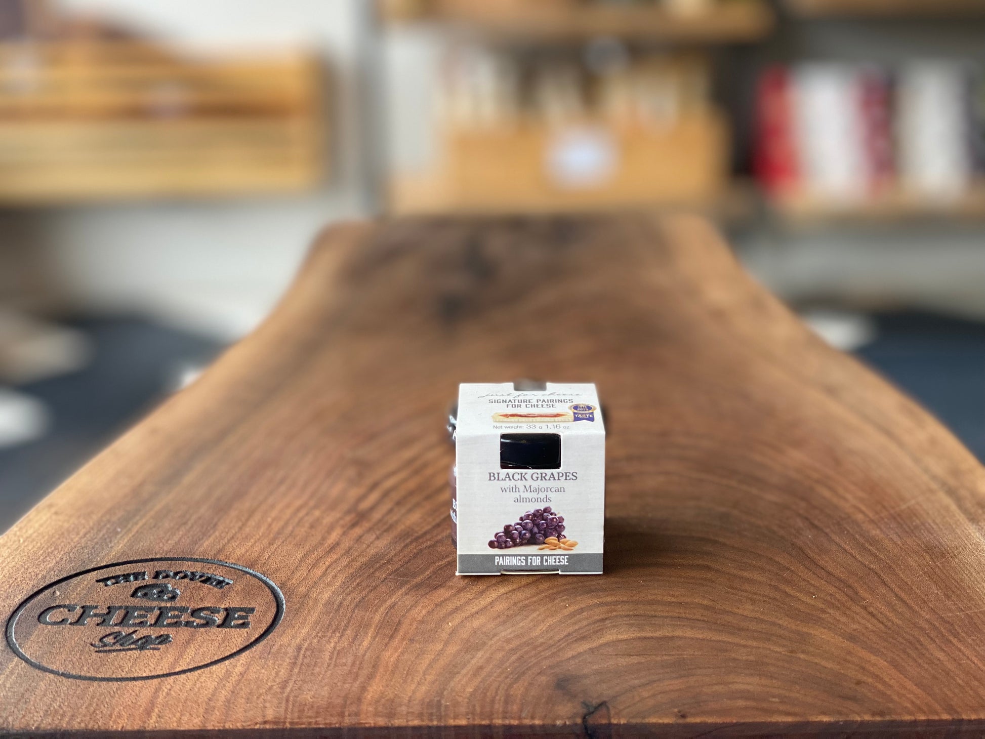 Black Grapes with Majorcan almonds. Fresh and sweet with a crunchy texture. Pair with soft paste and washed rind cheeses. 33g