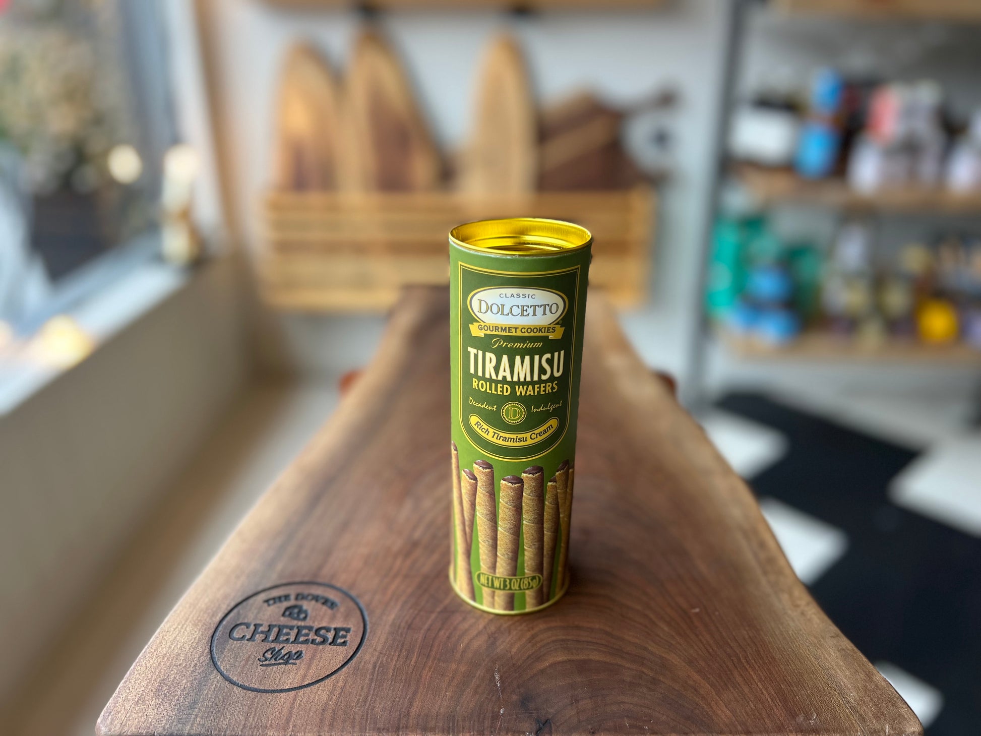 Crisp and light, this rolled wafer cookie is perfect with a cup of coffee. The creamy tiramisu filling is nutty and irresistible!