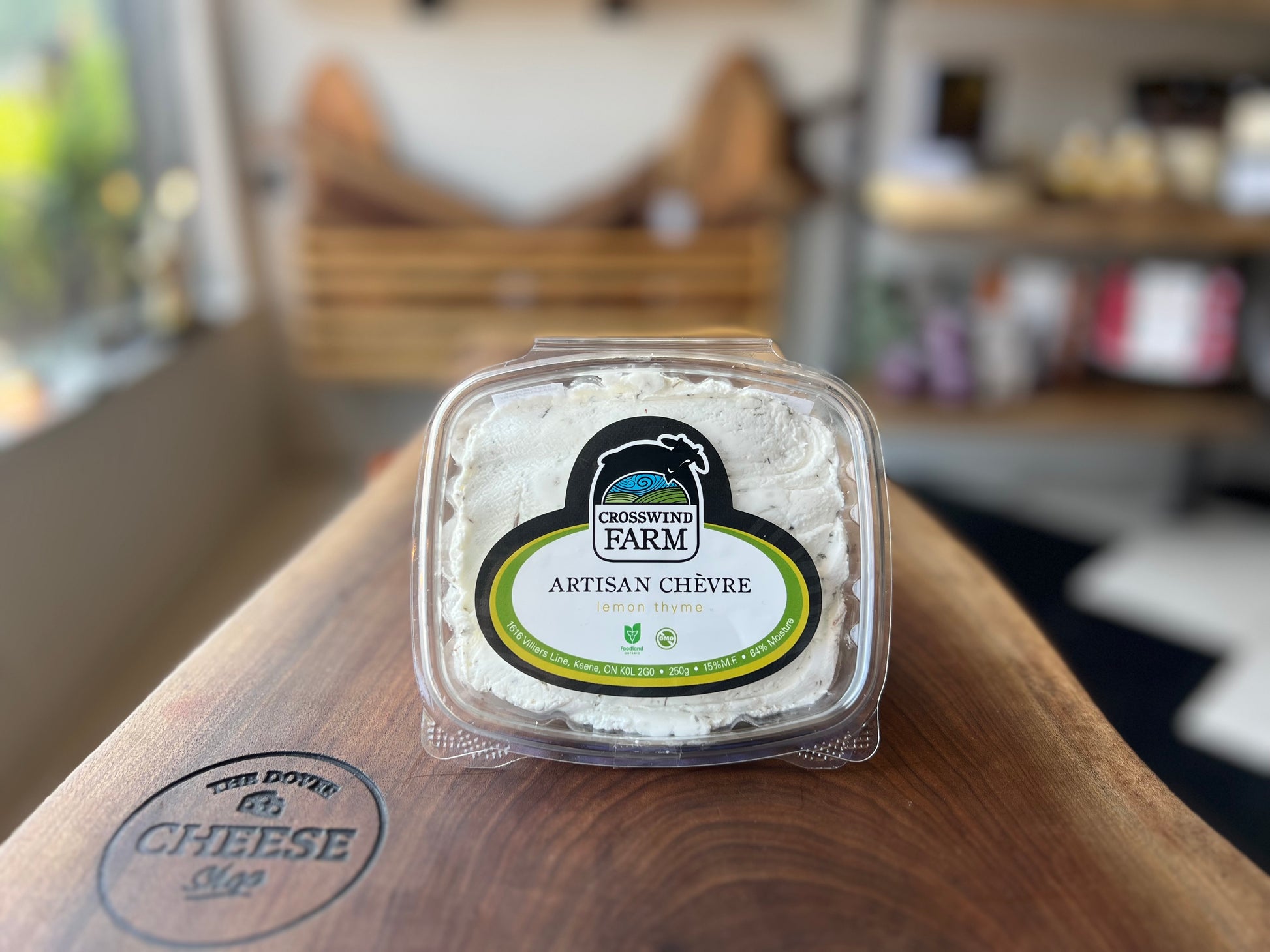 Crosswinds Farm chèvre is their pride and joy! A creamy fluffy textured cheese with a refreshing, zesty, herbaceous bite. This soft spreadable cheese has a mild creamy texture and is great on your favourite cracker or fresh bread.