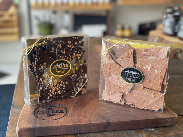 Maldon sea salt and toffee pieces showered on melt in your mouth fine Belgian chocolate. Choose from milk or dark chocolate boxes.