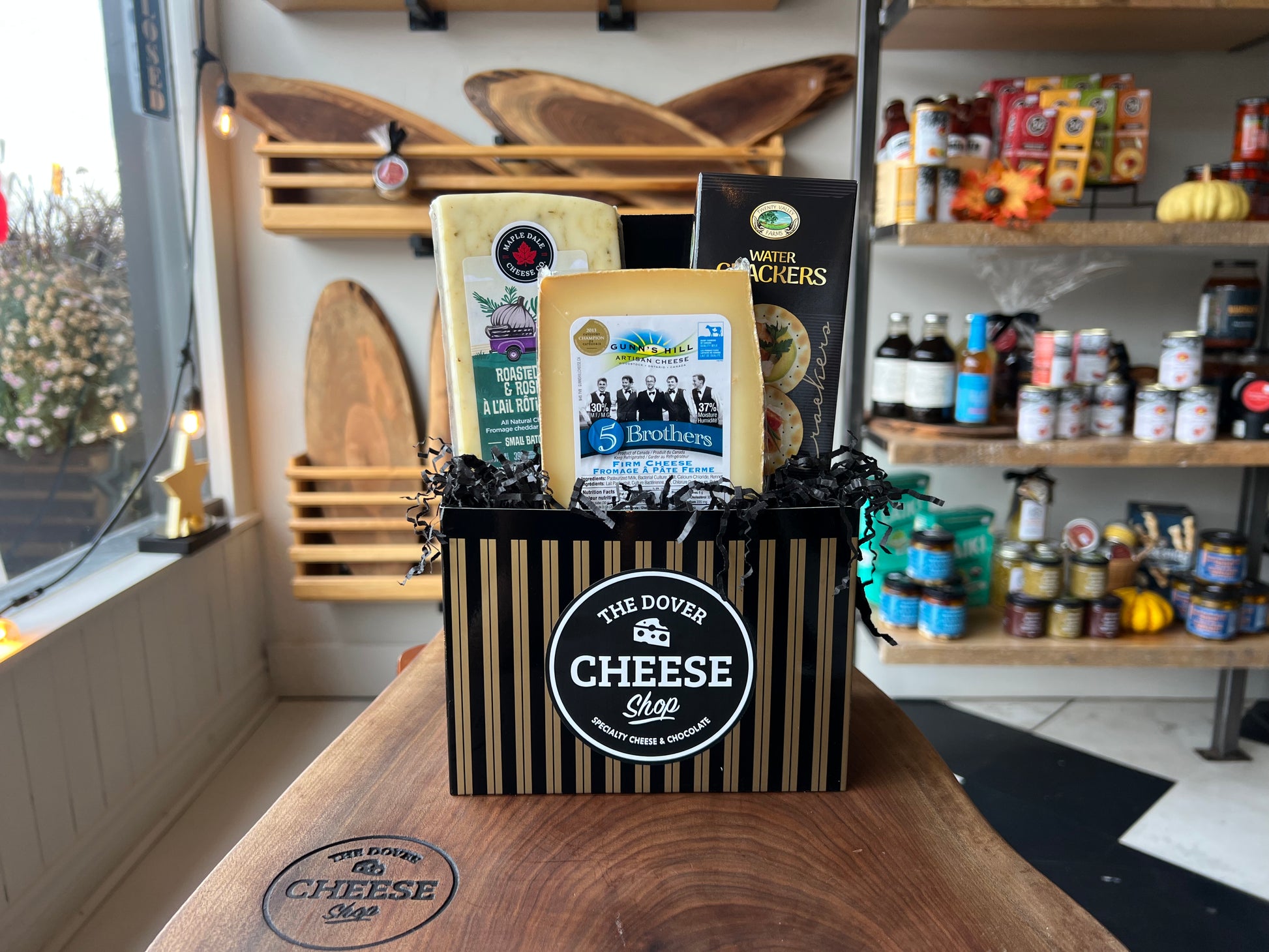Includes: Rosemary and garlic cheddar, Five Brothers, water crackers, gift basket, all packaged by hand in and finished with a gift tag (feel free to include your special message in the notes section at checkout).