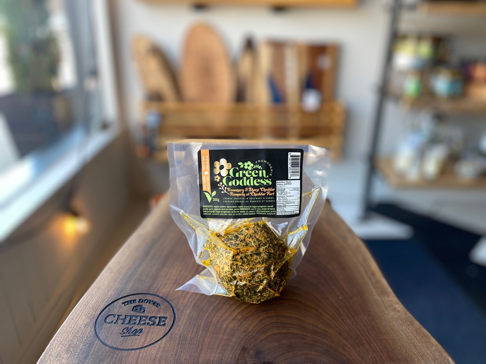 Silky aged orange cheddar, enrobed in rosemary and herbs.